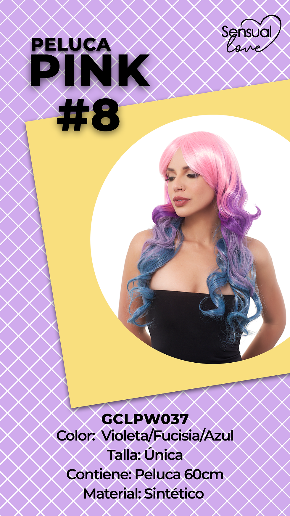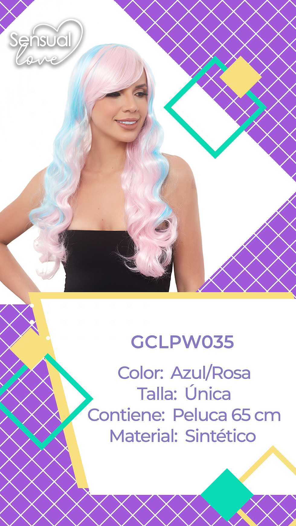 Peluca Nicol Ondulada Rosa/Violeta/Azul